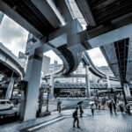 In the concrete embrace of Tokyo, where steel meets sky in a dance of architectural poetry, this photograph stands as a testament to the beauty found in urban chaos.