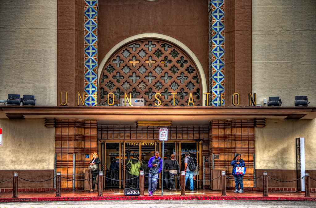 The vibrant architecture of Union Station in Los Angeles is enhanced by subtle HDR effects, bringing the scene and its diverse array of people to life with vivid detail. Photo by John Bauder. Licensed under CC BY.