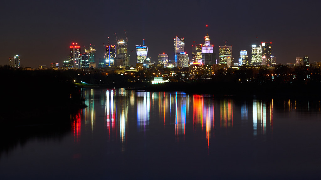 In the hush of night, Warsaw’s skyline dances upon the Vistula River—a luminous symphony of resilience, reflection, and quiet wonder. Photo by Radek Kucharski. Licensed under .